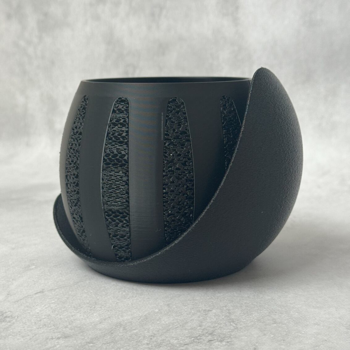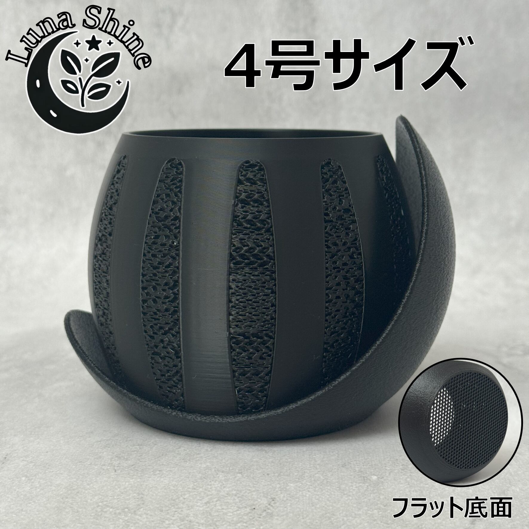 【4号/ブラック】ルナヴェール・プランター|ジャイロイド構造×フラット底面 (3Dプリント鉢)