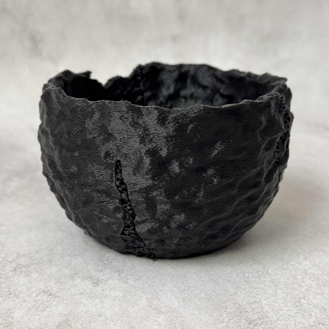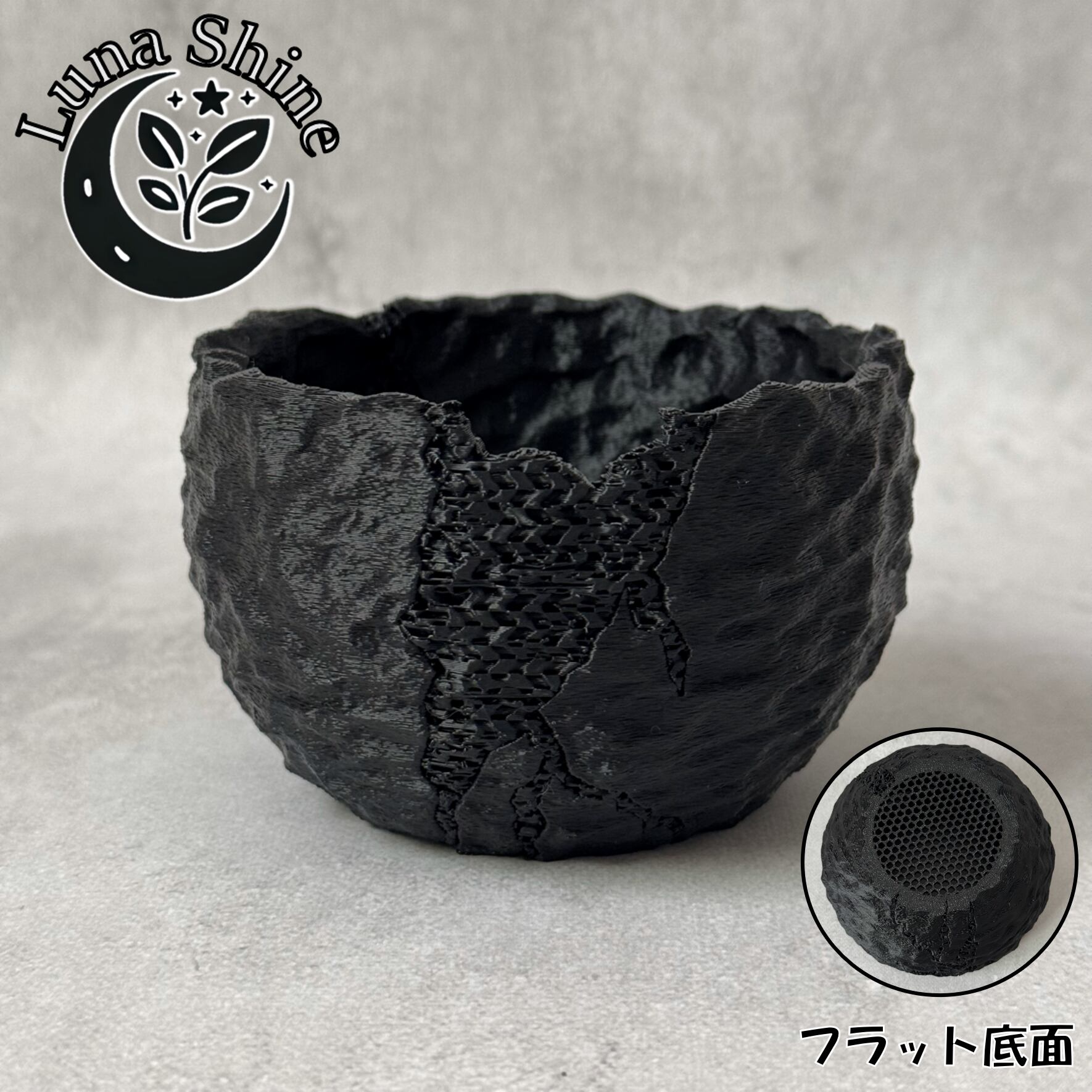 【3号/ブラック】岩裂(がんれつ)プランター|ジャイロイド構造×フラット底面(3Dプリント鉢)