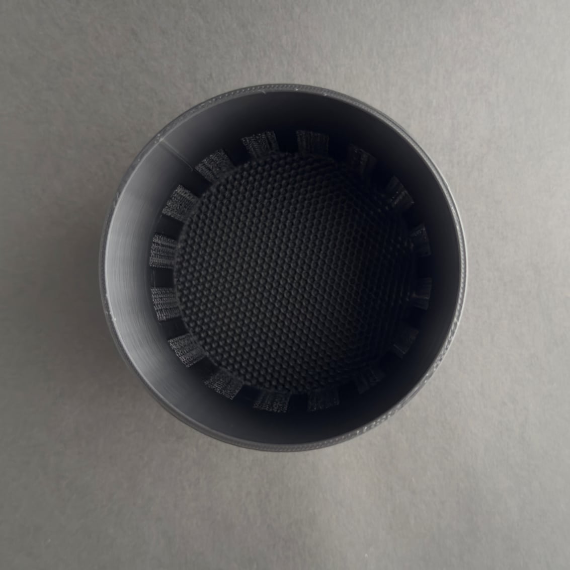 ジャイロイド構造が生み出すメッシュ状の美しいパターンは、ただ美しいだけではなく、空気や水の流れがスムーズになり、植物の根が元気に育ちます。