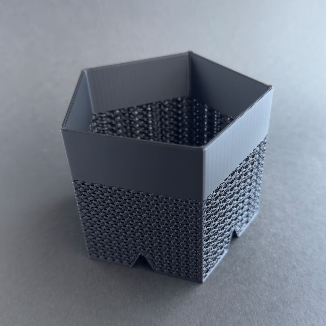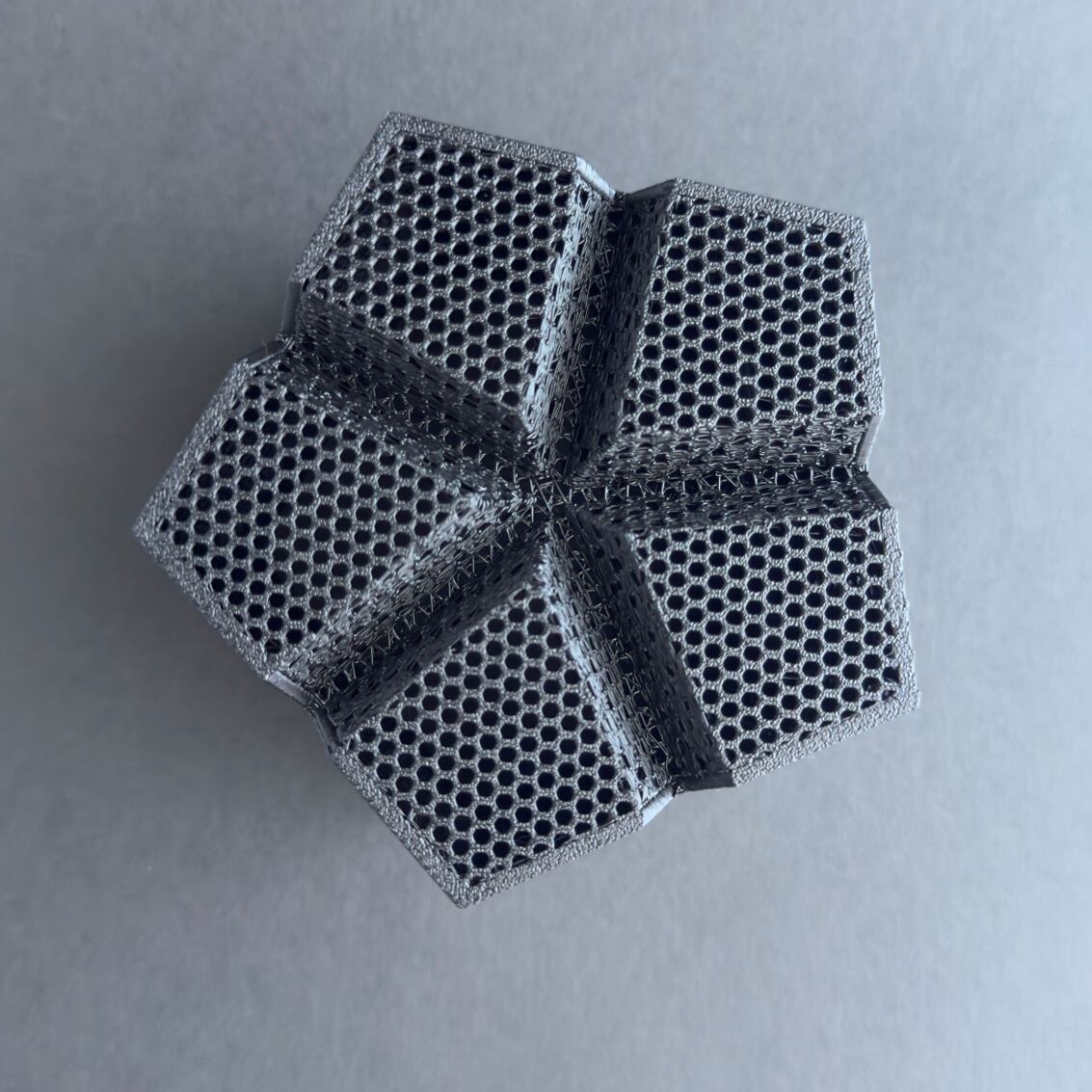『ペグ』は、五角形の輪郭が生み出す幾何学的な美しさと、側面を包み込むジャイロイド構造の柔らかな陰影。