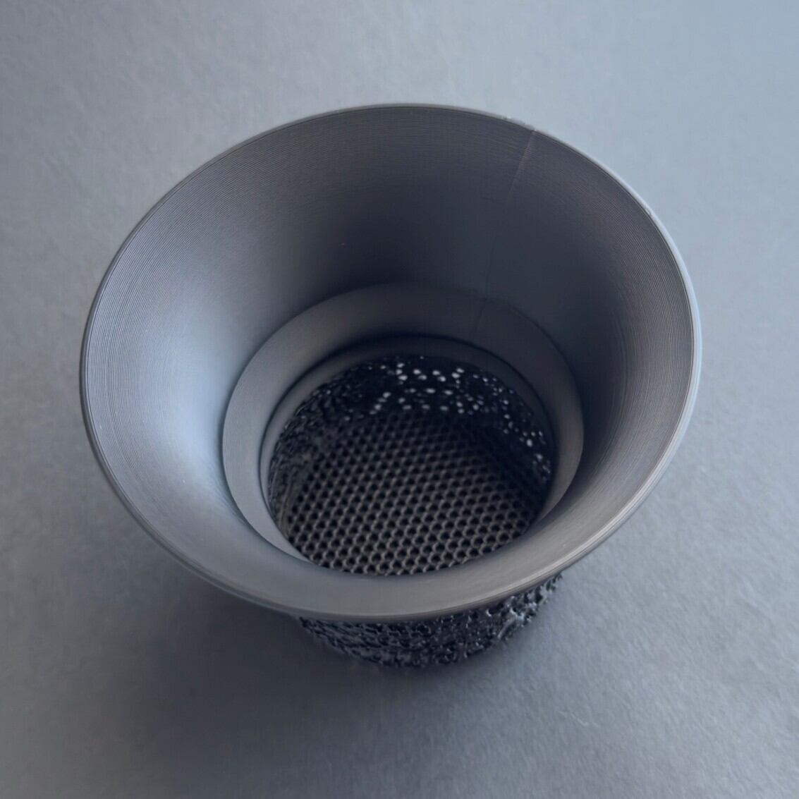 一方、下部には3Dプリンターだからこそ可能なジャイロイド構造を取り入れ、現代的でユニークな質感を演出。
