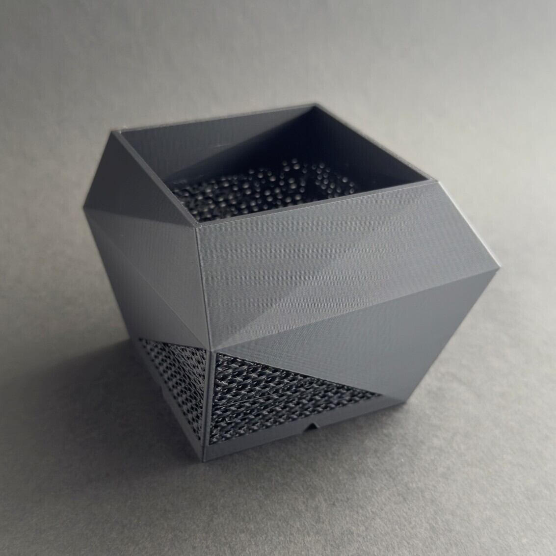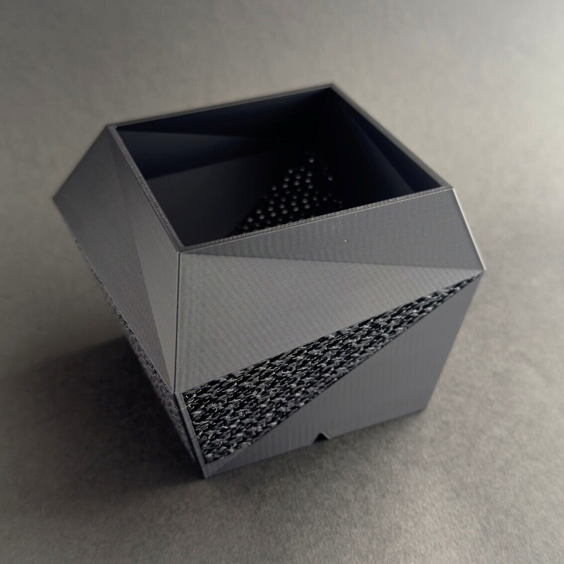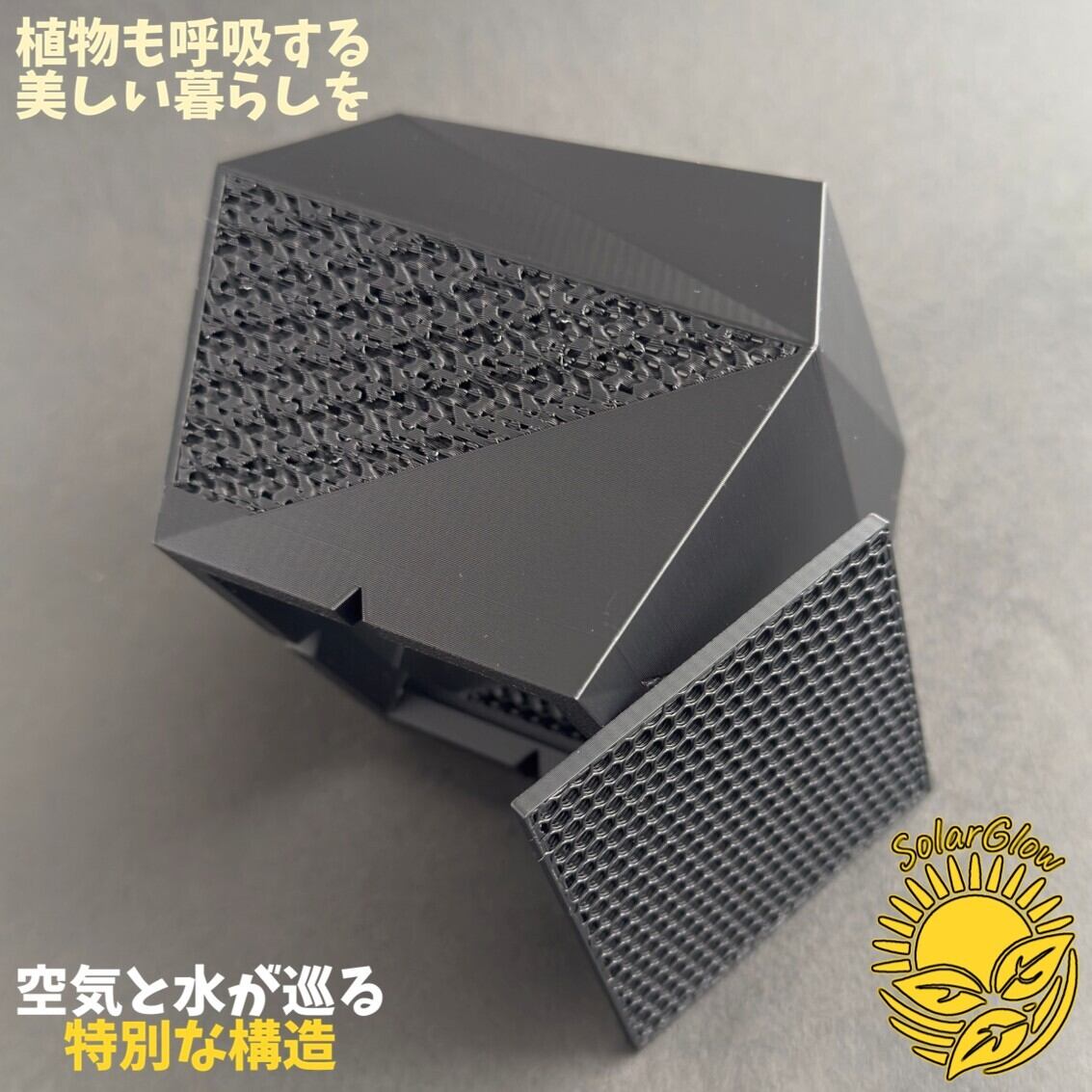 ジャイロイド構造が生み出すメッシュ状の美しいパターンは、ただ美しいだけではなく、空気や水の流れがスムーズになり、植物の根が元気に育ちます。