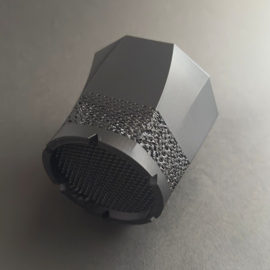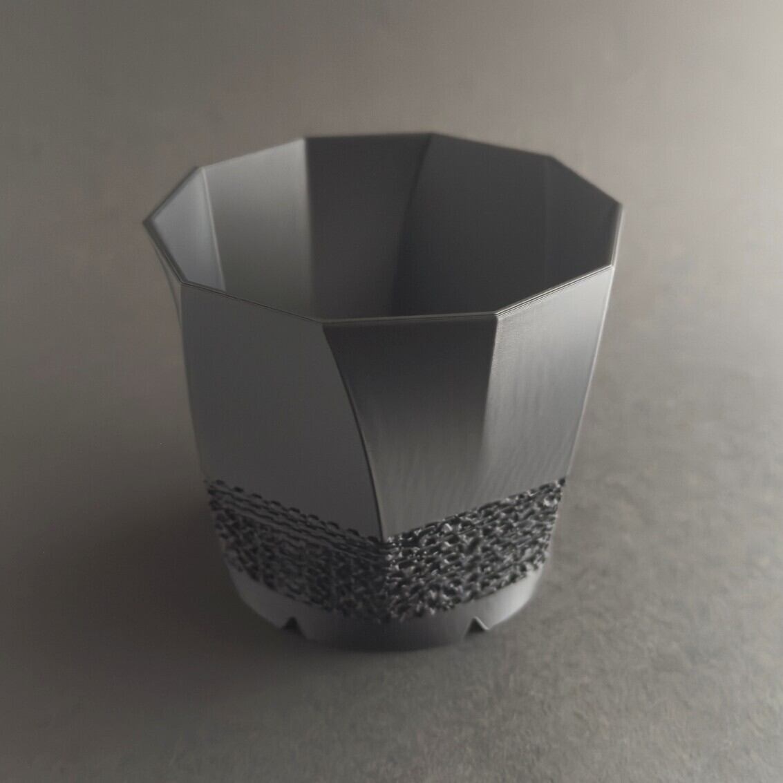 八角形のミニマルで力強いフォルムに、3Dプリンティングによって再現された多孔質構造が融合。