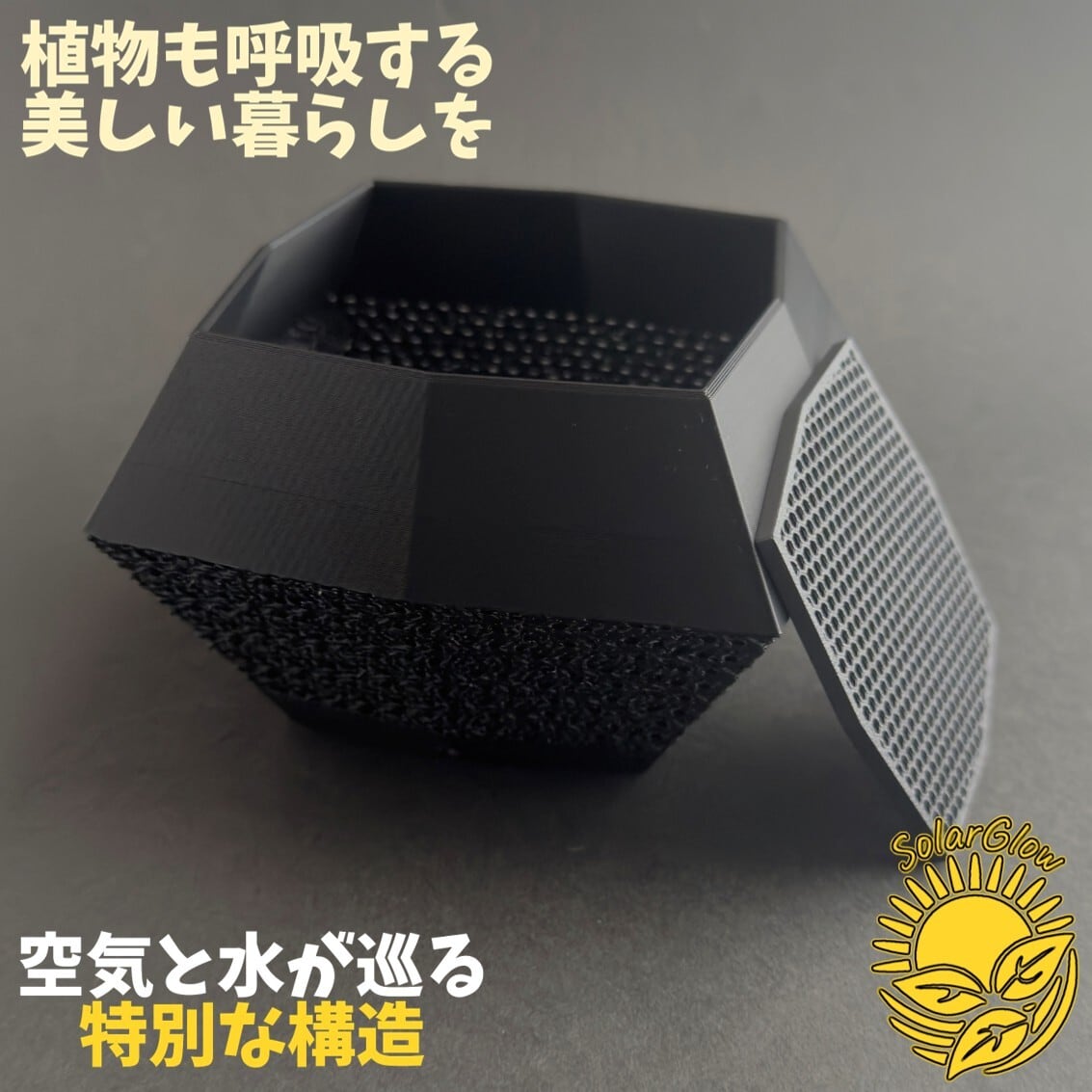 ジャイロイド構造が生み出すメッシュ状の美しいパターンは、ただ美しいだけではなく、空気や水の流れがスムーズになり、植物の根が元気に育ちます。