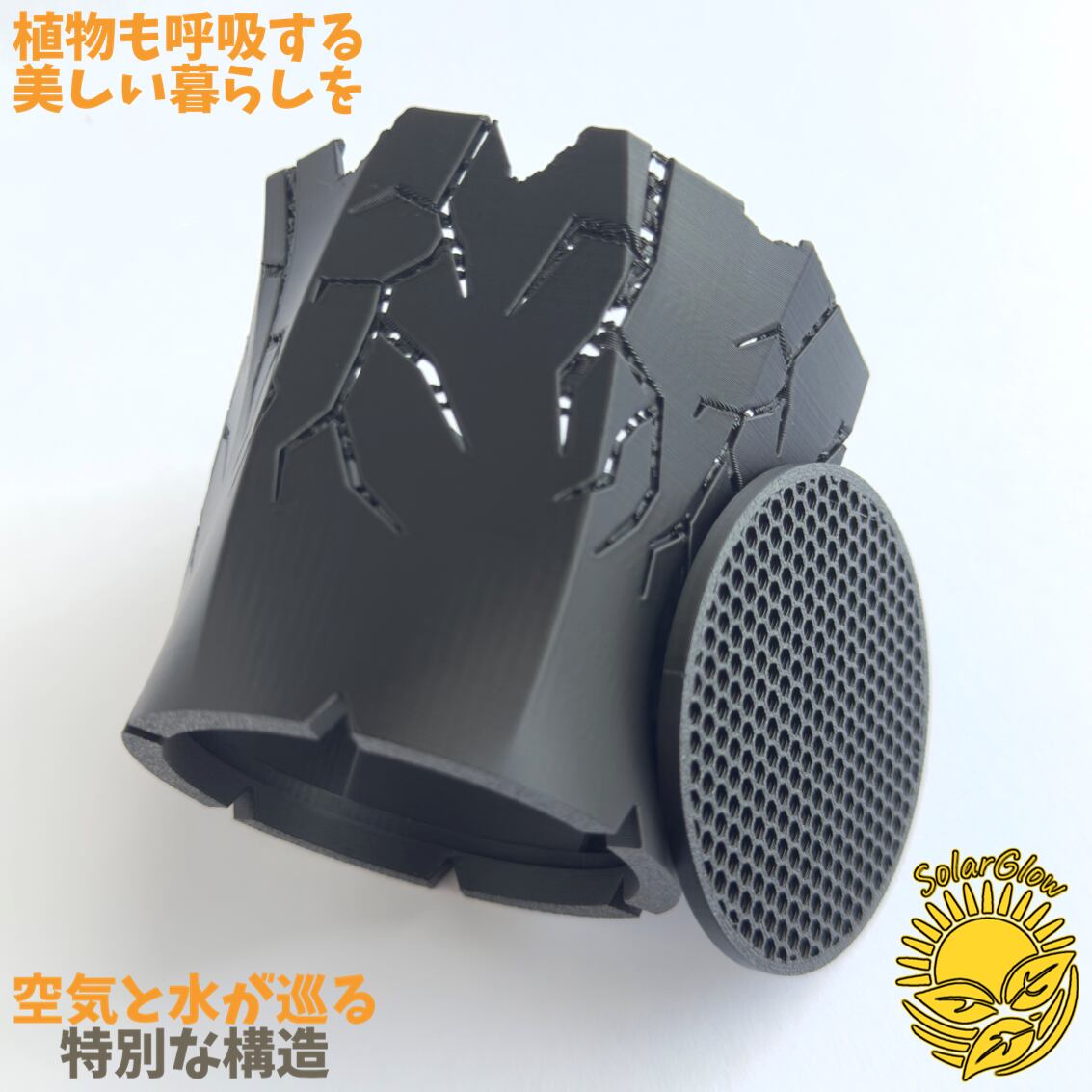 ジャイロイド構造が生み出すメッシュ状の美しいパターンは、ただ美しいだけではなく、空気や水の流れがスムーズになり、植物の根が元気に育ちます