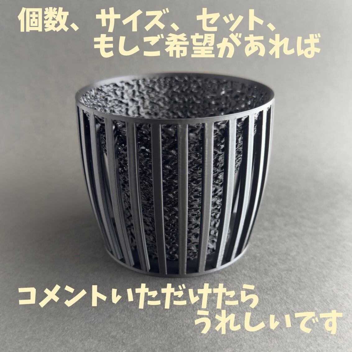 3Dプリンター鉢 3号相当 植木鉢 黒 『アーバンケージ』 作家鉢 通気性◎