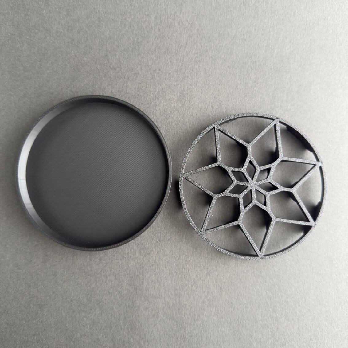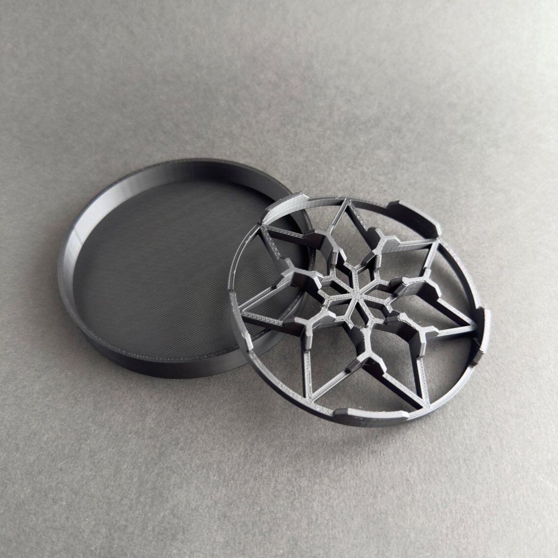 ユールネアは、雪の結晶や星の幾何パターンをモチーフにした、3Dプリント製のアート受け皿です。