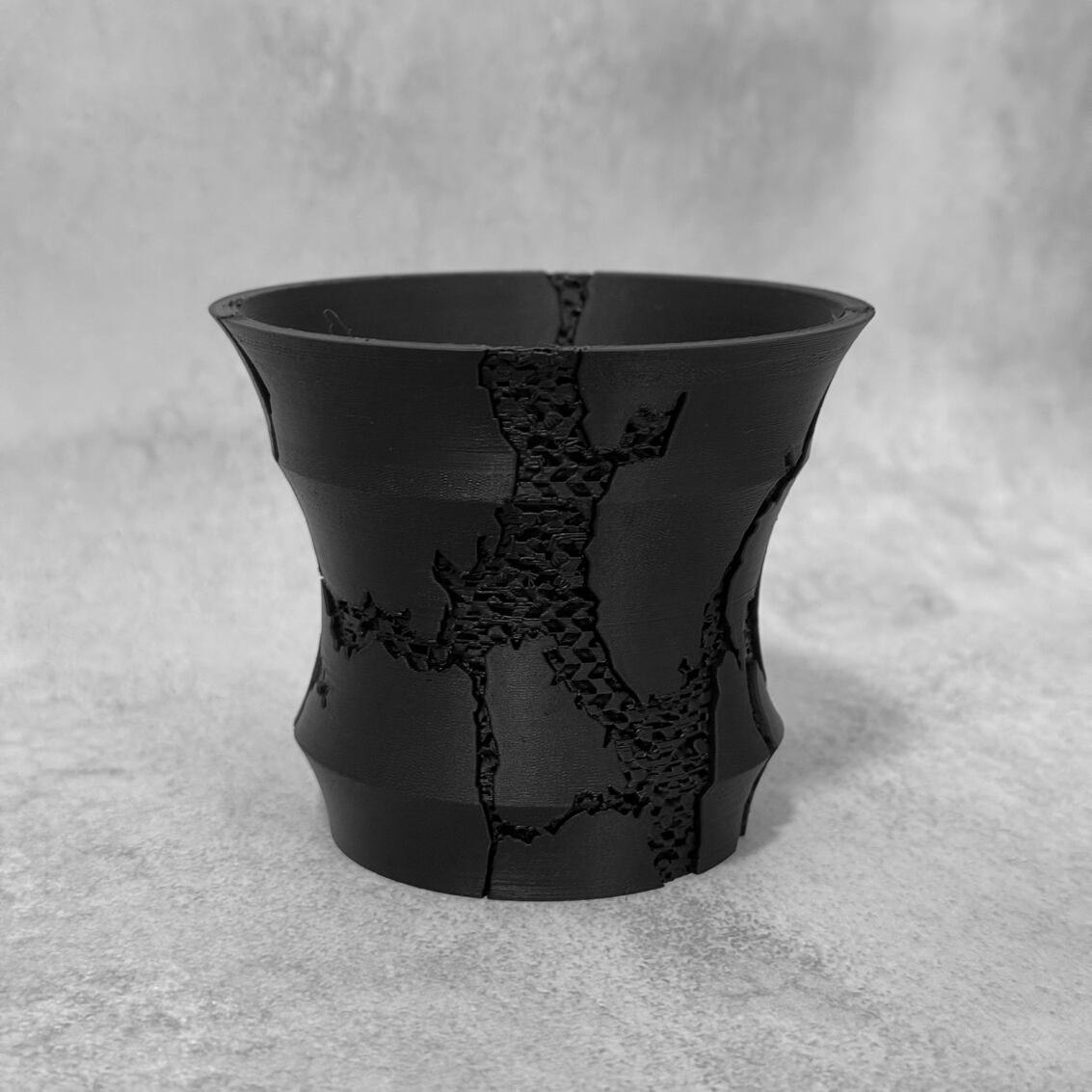 【3号/マットブラック】クルスト|ジャイロイド構造×フラット底面(3Dプリント鉢)